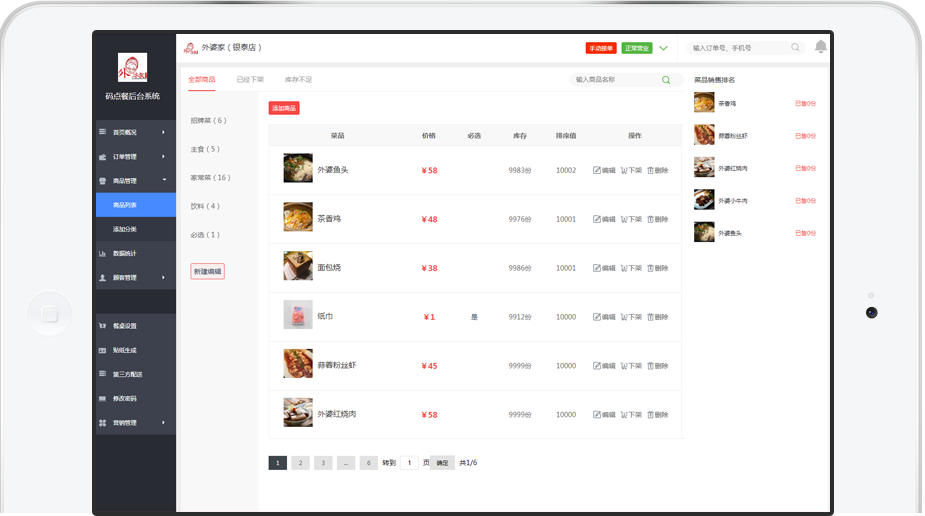 顾客点单,商家接单支持在线支付,货到付款商家后台自主管理店铺