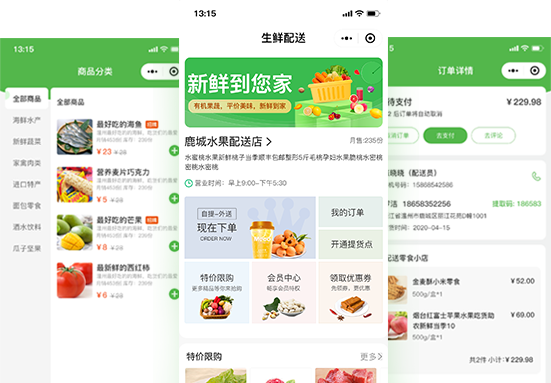 生鲜配送小程序,不依赖于第三方平台的渠道,同时可以 自主发挥自我服务特色。相信很多用户喜欢进行线上邮购 水果,他们价格实惠新鲜,并且省去了到店挑选时间。